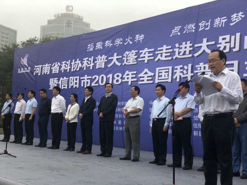 活動現(xiàn)場,河南省科協(xié)黨組書記曹奎、副巡視員楊金河、信陽市市委副書記劉國棟等領(lǐng)導(dǎo)為開展“河南省科協(xié)科普大篷車走進大別山走進貧困縣”活動的新縣、固始縣、光山縣、潢川縣、淮濱縣等五縣進行授旗;河南省青少年科技教育協(xié)會和香港普明善基金會共同出資捐贈新縣5名品學(xué)兼優(yōu)的貧困學(xué)生;河南科技報社將為中小學(xué)校贈送10萬份《河南科技報》。