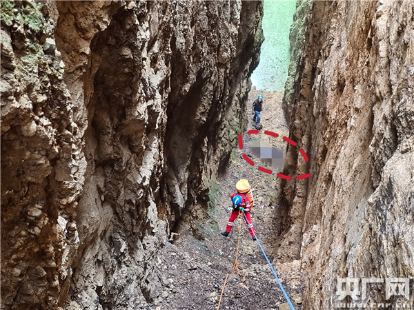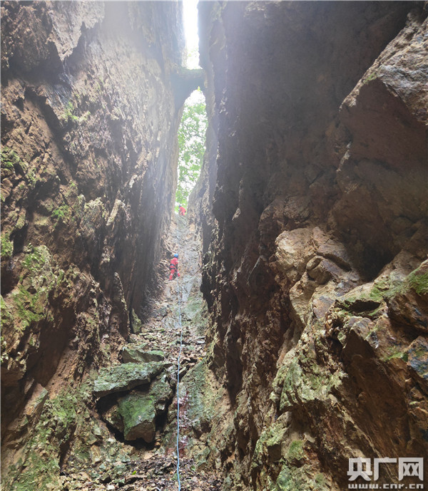半身腰陡峭斷崖下深約40米的山谷(央廣網(wǎng)發(fā) 泌陽蛟龍應(yīng)急救援隊(duì) 供圖)