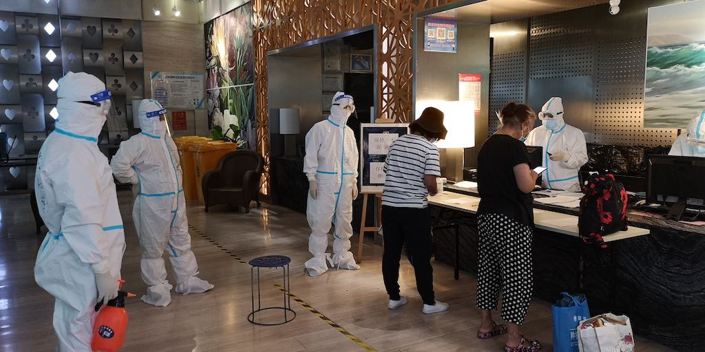 為打好疫情阻擊戰(zhàn),密接者隔離工作十分重要。在各個(gè)隔離點(diǎn),青年志愿者身穿防護(hù)服,接收每一位被隔離人員,為密接者體溫檢測(cè)、辦理入住、登記人員信息、填報(bào)臺(tái)賬等工作,24小時(shí)隨時(shí)待命。他們用自己的肩膀背起責(zé)任與信任,帶給隔離人員一份安心。