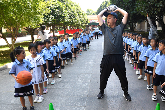 9月1日,杭州市小學迎來開學日。丁蘭實驗學校一名體育老師在為學生們上課。 視覺中國供圖