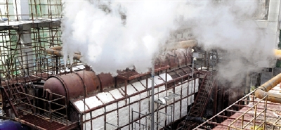 昨日,鄭州市政七街熱源廠三號(hào)燃?xì)飧邷劐仩t噴出大股的水蒸氣。