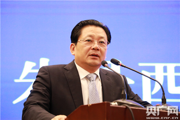 河南省駐馬店市委副書(shū)記、市長(zhǎng)朱是西在中國(guó)(駐馬店)國(guó)際農(nóng)產(chǎn)品加工產(chǎn)業(yè)園專場(chǎng)推介會(huì)上介紹駐馬店市情及社會(huì)發(fā)展情況。(央廣網(wǎng)記者 汪寧 攝)