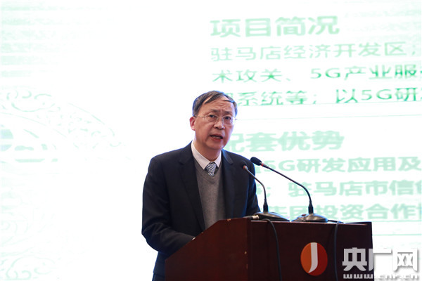 駐馬店市副市長(zhǎng)何晞就駐馬店市5G產(chǎn)業(yè)暨中國(guó)(駐馬店)國(guó)際農(nóng)產(chǎn)品加工產(chǎn)業(yè)園進(jìn)行推介。(央廣網(wǎng)記者 汪寧 攝)