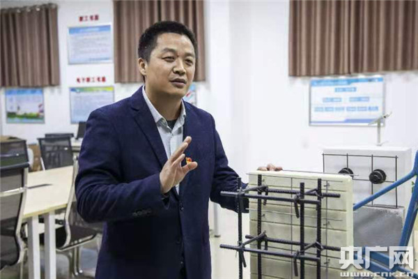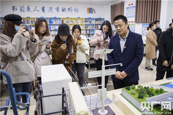 馮立雷介紹創(chuàng)新施工技術(shù)模型(央廣網(wǎng)記者 王勇生攝)