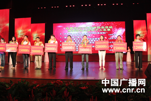 8月22日下午,“許昌市貧困助學(xué)十年總結(jié)表彰暨2011年助學(xué)助業(yè)資金發(fā)放儀式在許昌市許都大劇院舉行。市總工會(huì)向100名貧困學(xué)生代表發(fā)放了41.7萬元助學(xué)金,向9名貧困學(xué)生家長共發(fā)放了27萬元救助金。中共許昌市委書記李亞、許昌市人民政府市長張國暉、河南省總工會(huì)副主席王永領(lǐng)等領(lǐng)導(dǎo)出席了本次活動(dòng)。