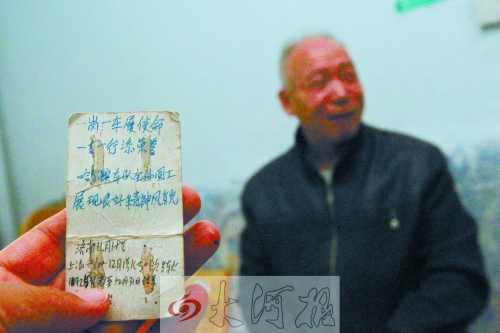 一張已經(jīng)變色的小紙片上是張師傅的崗位格言