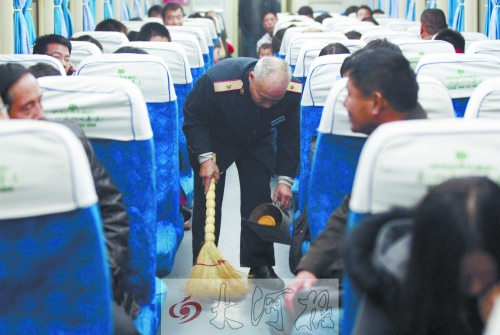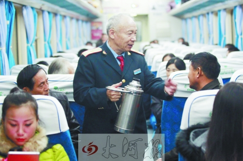已是白發(fā)蒼蒼,仍堅(jiān)持給乘客打開(kāi)水。