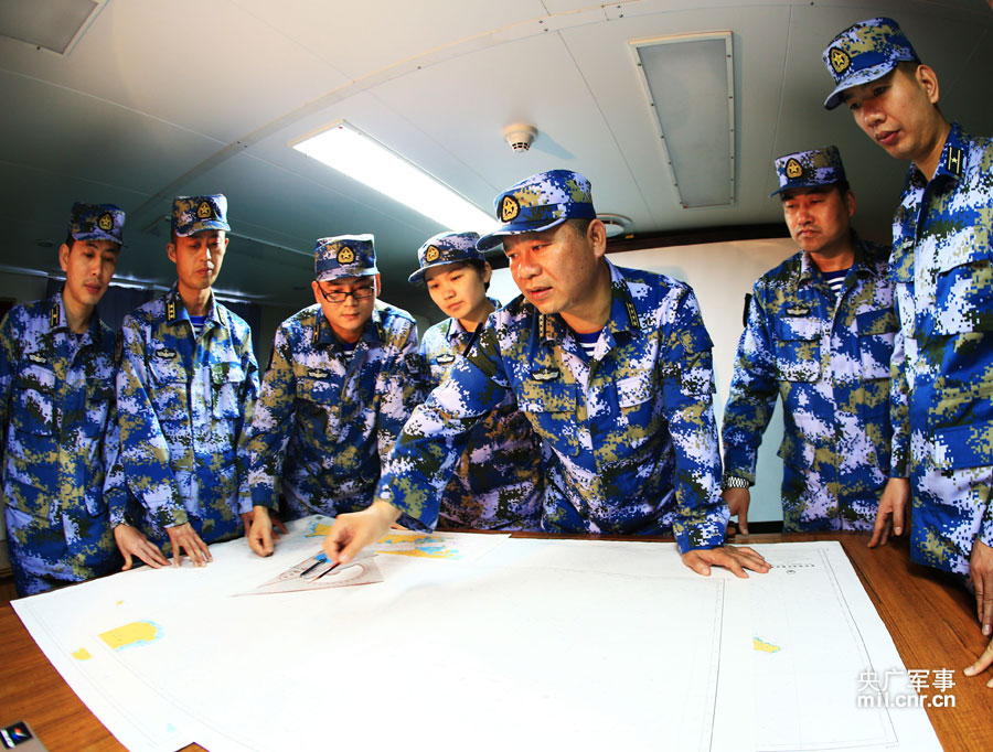 根據(jù)統(tǒng)一安排,中國海軍艦艇編隊計劃搜索海區(qū)位于南緯44度、東經(jīng)91度附近,被稱為咆哮的西風帶,一年四季海況都比較差,特別是受涌浪影響,平均浪高在3米以上,最高可達6至8米。針對搜尋海區(qū)的特點,航渡過程中,編隊海上任務(wù)指揮所按照上級通報的搜索區(qū)域,精心研究海區(qū)的水文氣象,特別是洋流和西風帶的數(shù)據(jù)信息,調(diào)整完善搜救方案預案。與此同時,潛水分隊、掃測分隊、醫(yī)療分隊和艦載直升機組也都進行了充分的準備,并多次開展針對性訓練。