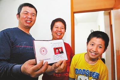 4月8日,泉州市民傅全民一家領到了“單獨兩孩”生育證。新華社發(fā)