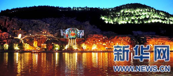 洛陽龍門石窟景區(qū)的夜景(2012年4月13日攝)。