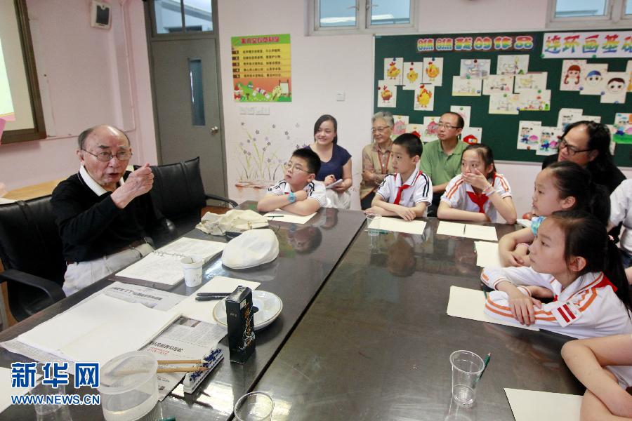6月23日,在上海市徐匯區(qū)第一中心小學(xué)的連環(huán)畫興趣課堂上,93歲高齡的著名連環(huán)畫家賀友直為學(xué)生講課。