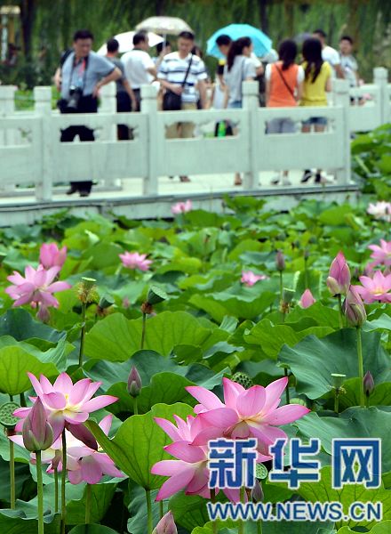 游客們在河南省宜陽縣的一個荷塘內(nèi)賞花、游玩(2014年7月12日攝)。