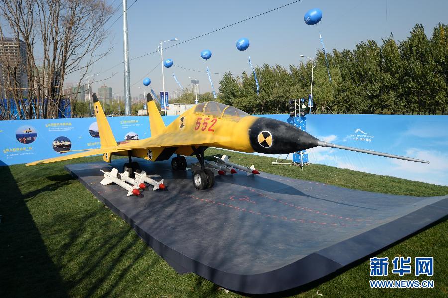 央廣網(wǎng)河南分網(wǎng)消息 據(jù)新華網(wǎng)報(bào)道:這是10月13日拍攝的展出的飛機(jī)模型。日前,一架遼寧艦艦載機(jī)殲-15模型“空降”沈陽(yáng)。本架殲-15模型按1:1比例復(fù)制,吸引了不少市民前來(lái)觀看并合影留念。 新華社記者潘昱龍 攝