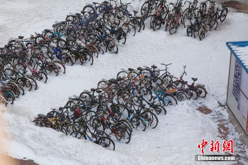 央廣網(wǎng)河南分網(wǎng)消息 3月4日,長春,在吉林大學宿舍樓下,大面積的自行車堆積如山。這些無人認領的自行車大多是因為高校學生在畢業(yè)后丟棄所致,積雪將這些破舊的自行車覆蓋。圖片來源:CFP視覺中國
