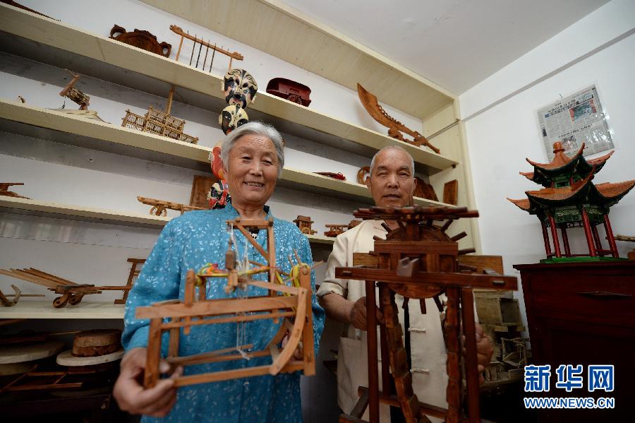 央廣網(wǎng)河南分網(wǎng)消息 在陜西省西安市的臨潼區(qū),為了將自己記憶中原汁原味的農(nóng)耕生產(chǎn)生活得以還原,兩位年過七旬的老者不約而同地將他們的夕陽時光花在了老式農(nóng)業(yè)用具上。 73歲的老人李樹森和老伴王月琴純手工制作了包括獨輪車、釤麥桿子、織布機、水車等六十余種微縮老式農(nóng)具。70歲的退休醫(yī)生唐遷收集了農(nóng)耕生產(chǎn)生活用具包括硬轱轆大車、羅面柜、紡線車等200多個種類近千件,足跡遍及陜西的周至、三原、藍田、眉縣等地。他們的愿望都是辦一個農(nóng)耕文化展覽館,來為這些老農(nóng)具安個家,也讓今后的年輕人能夠了解農(nóng)耕文明的生產(chǎn)生活方式。新華社記者 李一博 攝