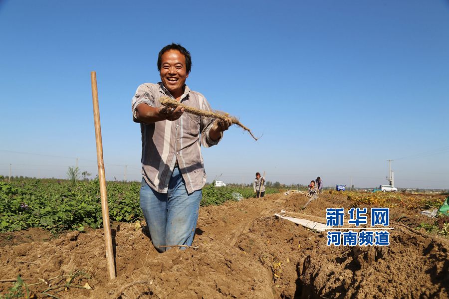央廣網(wǎng)河南分網(wǎng)消息 霜降過(guò)后,河南省溫縣2.3萬(wàn)畝鐵棍山藥陸續(xù)進(jìn)入收獲期,村民們忙著采收、銷售。今年鐵棍山藥長(zhǎng)勢(shì)看好,當(dāng)?shù)厮庌r(nóng)每畝平均收入在6000元以上。徐宏星 攝