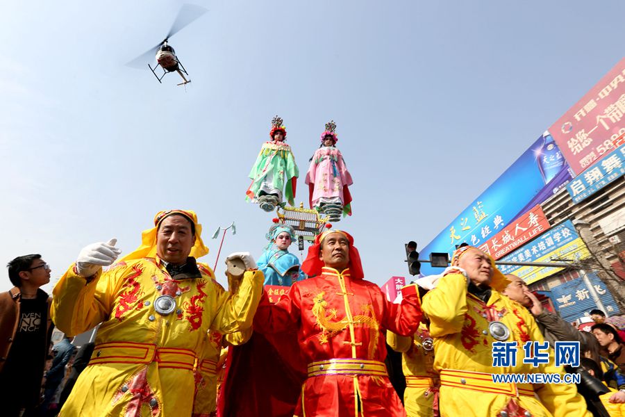 據(jù)介紹,抬閣是集歷史故事、神話傳奇于一體,融繪畫、戲曲、彩扎、紙塑、雜技等藝術(shù)為一身的漢族傳統(tǒng)民俗舞蹈。在木制的四方形小閣里有兩三個人扮飾戲曲故事中的人物,由別人抬著游行。抬閣已被列入國家級非物質(zhì)文化遺產(chǎn)名錄。抬閣的種類繁多,各地抬閣的藝術(shù)形式各有特色 ,以金壇抬閣、徽州抬閣、廣東抬閣、安陽抬閣和山西平陽《抬閣》最為著名。新華網(wǎng)發(fā)(畢興世 馬慶祥攝)