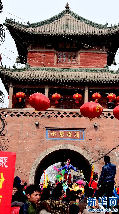 當日,河南省?h正月古廟會舉行民間社火大賽,精彩紛呈的抬閣、舞獅、踩高蹺等表演吸引了周邊市縣及來自晉、冀、魯、皖等省的眾多游客。河南浚縣正月古廟會已有1600多年歷史,從每年農(nóng)歷正月初一持續(xù)到二月初二,被譽為鄉(xiāng)村里的“狂歡節(jié)”。