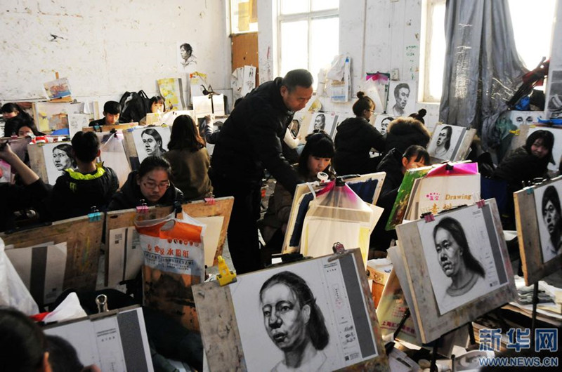 12月10日,在河南省內(nèi)黃縣一家美術(shù)專業(yè)培訓(xùn)學(xué)校,考生在進(jìn)行專業(yè)練習(xí)。