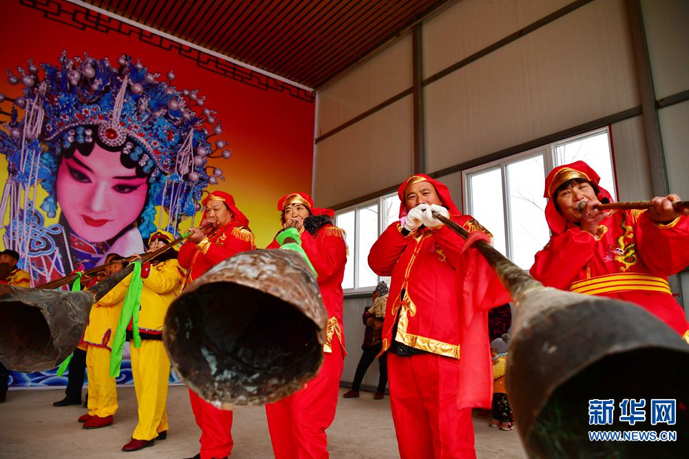2月7日,村民在羅閣村文化舞臺(tái)表演羅閣大喇叭。 當(dāng)日,河南省駐馬店市西平縣盆堯鎮(zhèn)羅閣村的文化舞臺(tái)熱鬧非凡,村民表演了舞獅、豬八戒背媳婦、抬轎子、劃旱船、騎竹馬、吹喇叭等民俗節(jié)目,吸引眾多村民前來觀看。新華社記者馮大鵬攝 -