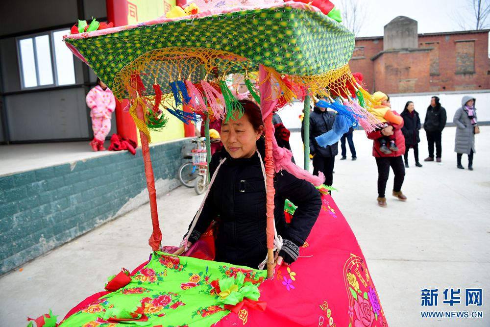 2月7日,村民在羅閣村文化舞臺(tái)表演騎竹馬。 當(dāng)日,河南省駐馬店市西平縣盆堯鎮(zhèn)羅閣村的文化舞臺(tái)熱鬧非凡,村民表演了舞獅、豬八戒背媳婦、抬轎子、劃旱船、騎竹馬、吹喇叭等民俗節(jié)目,吸引眾多村民前來觀看。新華社記者馮大鵬攝
