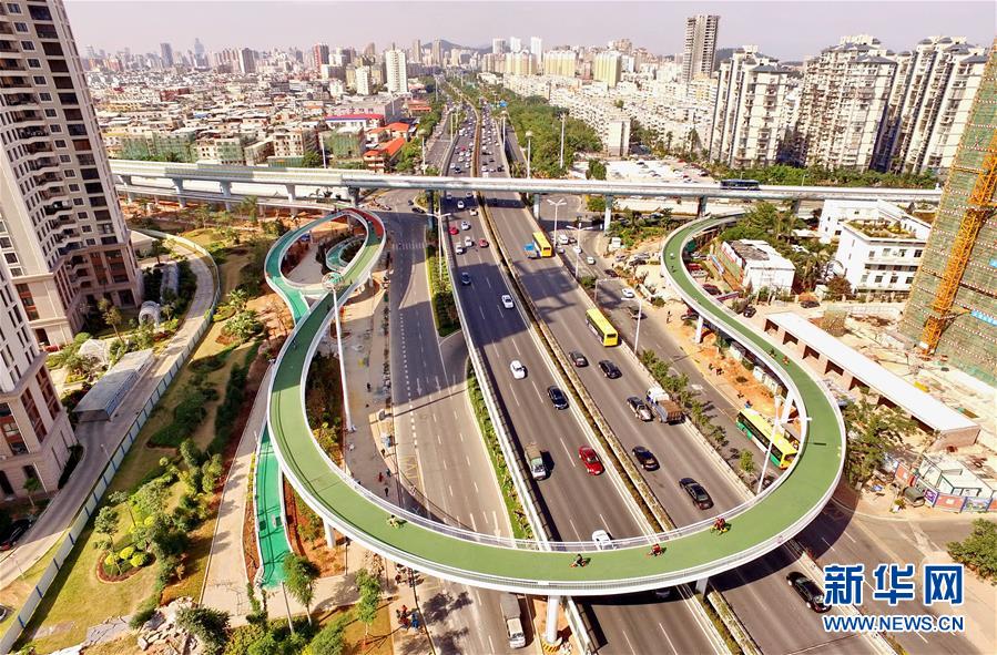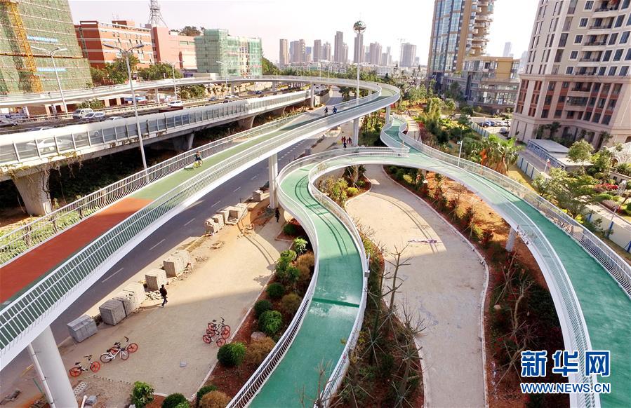 這是廈門市湖里區(qū)云頂中路和仙岳路交叉口的空中自行車道(2月9日攝)。1月26日,全國首條空中自行車道——福建廈門云頂路自行車快速道示范段試運營。這條全程高架的空中自行車道全長7.6公里,試運營以來吸引眾多市民前來騎行體驗,感受“空中騎行”的獨特魅力。 新華社記者 林善傳 攝 圖片來源:新華網(wǎng) -