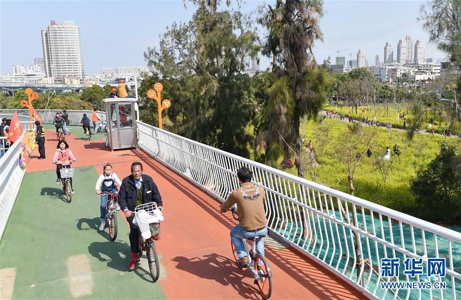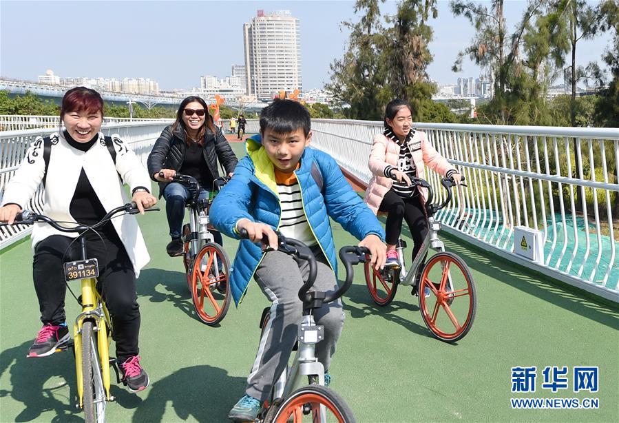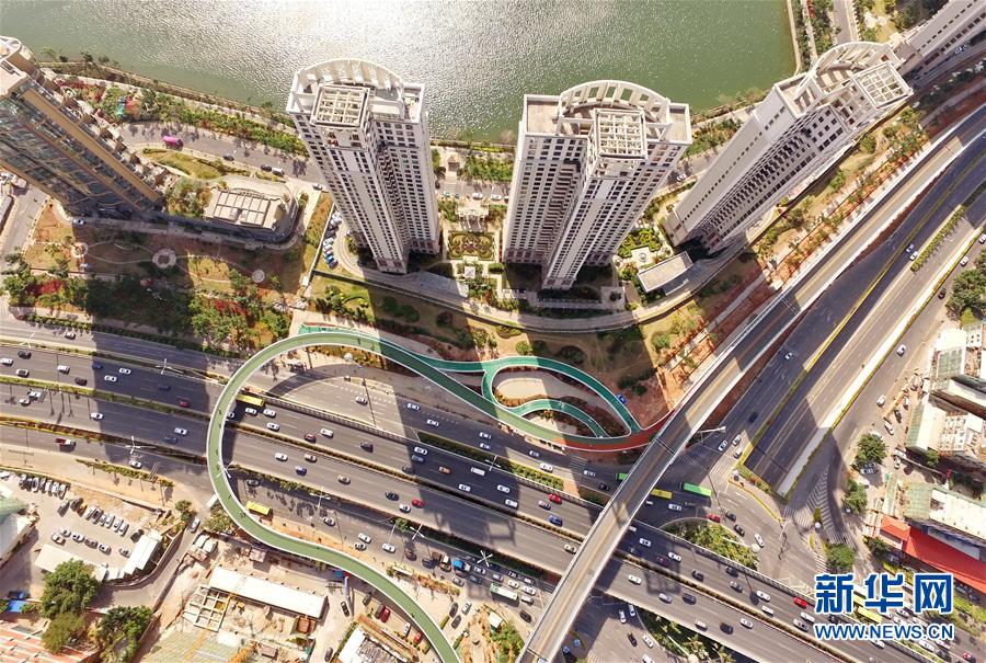 這是廈門市湖里區(qū)云頂中路和仙岳路交叉口的空中自行車道(2月9日攝)。1月26日,全國首條空中自行車道——福建廈門云頂路自行車快速道示范段試運營。這條全程高架的空中自行車道全長7.6公里,試運營以來吸引眾多市民前來騎行體驗,感受“空中騎行”的獨特魅力。 新華社記者 林善傳 攝 圖片來源:新華網(wǎng)