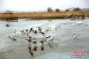 2月16日,地處甘肅河西走廊,祁連山下的張掖市,在春風(fēng)的吹拂下,氣候開(kāi)始溫暖起來(lái)。在張掖國(guó)家濕地公園里,湖水冰面開(kāi)始消融,一群斑頭雁在此嬉戲、覓食。它們有站的,有臥的,還有小心翼翼在冰面上行走的,萌態(tài)十足。 陳禮 攝 -