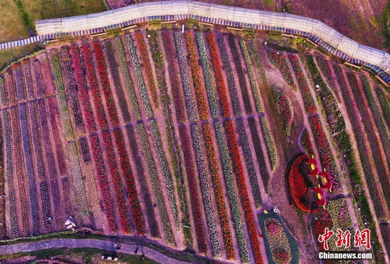 3月25日,在江西南昌市灣里區(qū)歡樂(lè)葵園景區(qū),50多個(gè)品種、50余萬(wàn)株郁金香相繼綻放,紅的、粉的、黃的、白的等各色郁金香吸引眾多市民和游客前來(lái)踏青賞花。高空俯瞰下的郁金香花田繽紛多彩,為游客帶來(lái)夢(mèng)幻般的視覺(jué)盛宴。劉占昆 攝 -