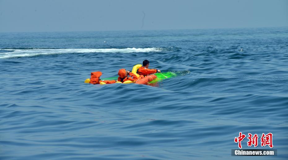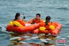 16名中國航天員和2名歐洲航天員,8月21日在山東省煙臺市附近海域圓滿完成了為期17天的海上救生訓練任務。圖為訓練期間,8月17日,中國航天英雄楊利偉(中)參與訓練。 中新社發(fā) 朱九通 攝 -