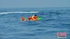 16名中國航天員和2名歐洲航天員,8月21日在山東省煙臺市附近海域圓滿完成了為期17天的海上救生訓練任務。圖為訓練期間,8月8日,受試人員坐在小艇上等待救援。 中新社發(fā) 朱九通 攝 -
