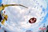 16名中國航天員和2名歐洲航天員,8月21日在山東省煙臺市附近海域圓滿完成了為期17天的海上救生訓練任務。圖為訓練期間,8月2日,航天員乘坐救生吊籃。 中新社發(fā) 朱九通 攝 -