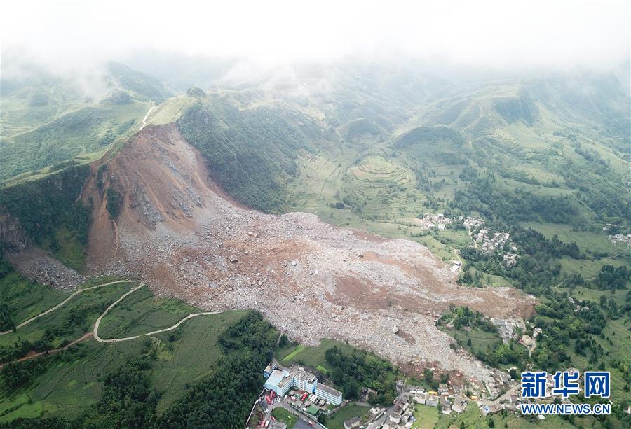 航拍山體滑坡現(xiàn)場(chǎng)(8月29日攝)。截至8月29日16時(shí)30分,貴州省納雍縣山體崩塌地質(zhì)災(zāi)害救援現(xiàn)場(chǎng)已搜救出25人,其中17人死亡、8人受傷,目前尚有18人失聯(lián)。據(jù)悉,崩塌山體距離災(zāi)害地垂直落差約200米,崩塌巖體約為60余萬(wàn)立方米。災(zāi)害發(fā)生后,當(dāng)?shù)亟M織專(zhuān)業(yè)力量全力以赴晝夜不休開(kāi)展救援。新華社記者陶亮攝 -