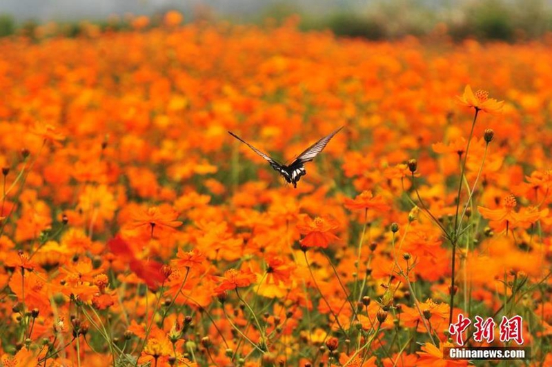 9月22日,在江西省上饒市鉛山縣永平鎮(zhèn)打石塢秀美新村,秋色迷人如童話般美麗。今年以來(lái),該鎮(zhèn)籌集近千萬(wàn)元資金,按照“縱情山水騎行處,養(yǎng)心參禪桃花源”的理念,打造四季花海之地。目前,首批栽種的小皺菊已盛開(kāi),游客絡(luò)繹不絕。丁銘華 攝 -