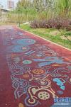 11月7日,鄭州市南三環(huán)與中州大道附近,西吳河公園內(nèi)新建的“科普健身步道”,1036米長(zhǎng)的紅褐色步道,地面上畫有色彩斑斕的藝術(shù)科普?qǐng)D案,吸引不少市民前來游園。 -