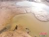 在鄱陽湖都昌印山附近水域,漁民在干涸的湖汊中捕魚蝦。傅建斌 攝 -