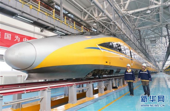 10月7日,一輛綜合檢測(cè)列車駛出京張高鐵北京北動(dòng)車所。 日前,京張高鐵聯(lián)調(diào)聯(lián)試工作正式啟動(dòng),位于北京市昌平區(qū)的京張高鐵北京北動(dòng)車所也隨之投入使用,未來將承擔(dān)京張高鐵動(dòng)車組的檢修和整備等工作。京張高鐵起自北京北站,終點(diǎn)為張家口站,正線全長(zhǎng)174公里,是2022年北京冬奧會(huì)的重要交通保障設(shè)施。開通運(yùn)營(yíng)后乘高鐵從北京到張家口的時(shí)間將縮短至1小時(shí)以內(nèi)。 新華社記者 馬寧 攝 -