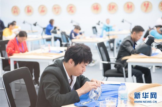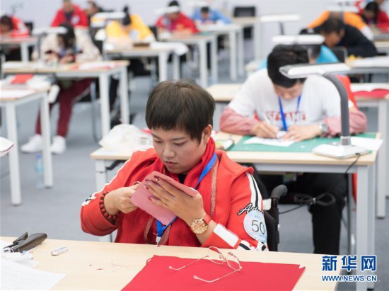 10月27日,殘疾人選手參加編織職業(yè)技能大賽。 當日,第六屆全國殘疾人職業(yè)技能大賽暨第三屆全國殘疾人展能節(jié)在浙江嘉興開幕。 新華社記者翁忻旸攝 -