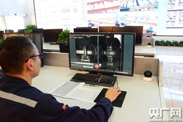 2月5日上午8點15分,在鄭州動車段TEDS集中監(jiān)控中心,郭江南盯著電腦屏幕,格外專注。屏幕上的圖片,是用幾千張圖片拼接好的連貫圖像。他不時用鼠標在屏幕上畫畫圈圈。