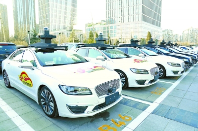 去年年底,在北京經(jīng)濟技術(shù)開發(fā)區(qū),準(zhǔn)備進行自動駕駛載人載物測試的車輛等候出發(fā)。新華社發(fā)