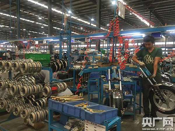 而在葉縣產(chǎn)業(yè)集聚區(qū)內(nèi)的河南隆鑫機車有限公司,是全國三輪機車行業(yè)唯一一家上市企業(yè),擁有裝配流水線8條,整車生產(chǎn)能力50萬臺。車間的崔大姐已經(jīng)在廠里工作一年多了,她是附近的村民,在沒有來這里工作之前,是一位家庭主婦,現(xiàn)在她主要負(fù)責(zé)給三輪車安裝暖風(fēng)機,每個月的工資能拿到2000多元。