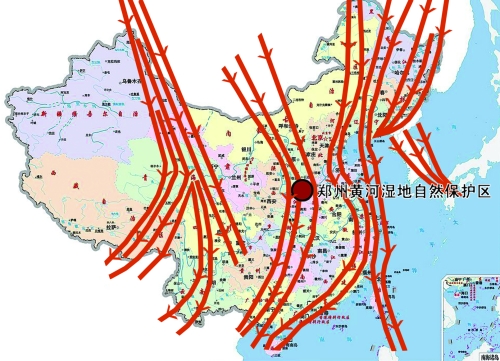 指著這份鳥類遷徙地圖,鄭州黃河濕地自然保護(hù)區(qū)的工作人員告訴記者:“鄭州市的黃河濕地自然保護(hù)區(qū),剛好位于中線的中心位置。”