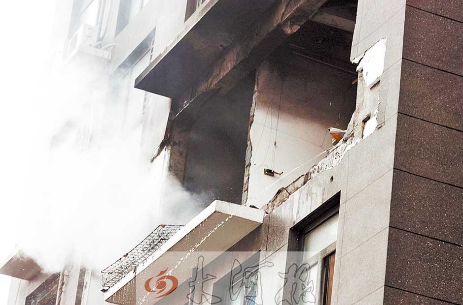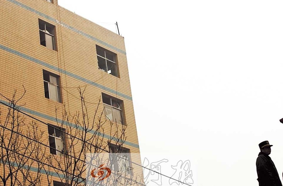 事發(fā)居民樓對(duì)面50米外的快捷酒店,窗戶(hù)大部分破損。