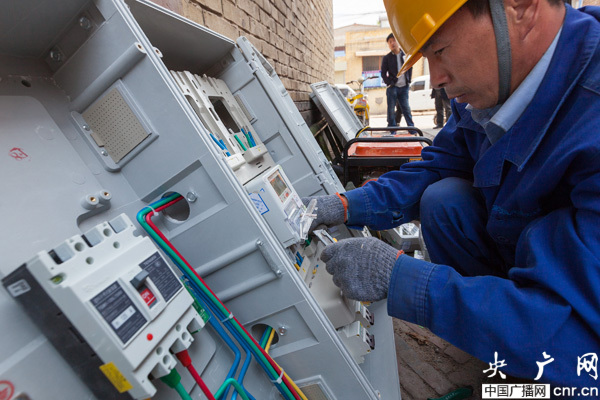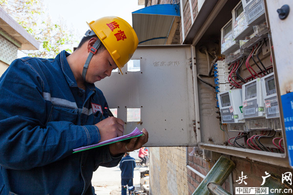 央廣網(wǎng)河南分網(wǎng)消息 4月20日,河南滑縣25名電力施工人員正在該縣城區(qū)教育路進(jìn)行智能電表更換及表箱配套升級(jí)改造工作,并對(duì)下戶線進(jìn)行整理、遷改。