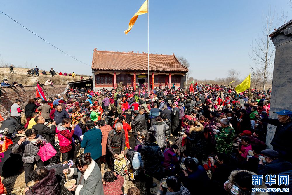 2017年2月27日,河南省安陽(yáng)縣水冶鎮(zhèn)阜城村附近的白龍?zhí)稄R會(huì)上,3000人同吃“大鍋飯”(湯面條),喜迎“龍?zhí)ь^”,場(chǎng)面宏大,令人嘆為觀止。新華網(wǎng)發(fā)(王子瑞 攝) -