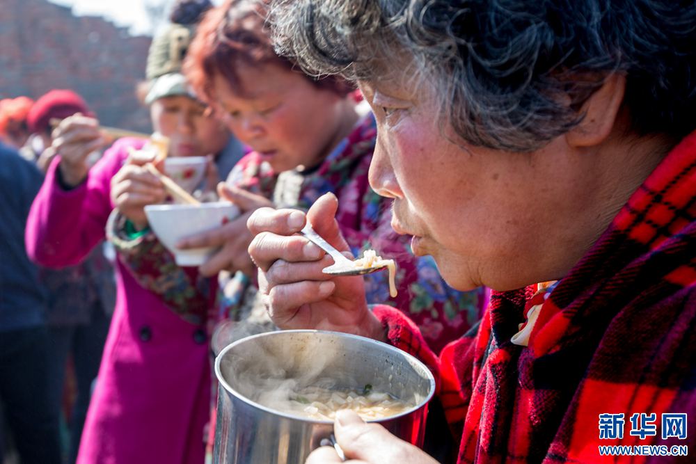 2017年2月27日,河南省安陽(yáng)縣水冶鎮(zhèn)阜城村附近的白龍?zhí)稄R會(huì)上,3000人同吃“大鍋飯”(湯面條),喜迎“龍?zhí)ь^”,場(chǎng)面宏大,令人嘆為觀止。當(dāng)天是農(nóng)歷二月初二,相傳是“龍?zhí)ь^”的日子。每年的這一天,河南省安陽(yáng)市水冶鎮(zhèn)阜城村附近的白龍?zhí)稄R會(huì)都熱鬧非凡,方圓數(shù)十里的人們來(lái)到白龍?zhí)稄R,舉行聲勢(shì)浩大的慶;顒(dòng),祈盼新的一年風(fēng)調(diào)雨順,五谷豐登。到了中午,廟上支起大鍋?zhàn)鲲?供香客和趕廟會(huì)人員免費(fèi)食用。近年來(lái),白龍?zhí)稄R會(huì)上人們爭(zhēng)食“大鍋飯”的獨(dú)特民俗,吸引了安陽(yáng)以及鄭州、濮陽(yáng)等地的攝影愛(ài)好者前來(lái)攝影采風(fēng),白龍?zhí)稄R會(huì)也成了攝影人的盛會(huì)。新華網(wǎng)發(fā)(王子瑞 攝) -