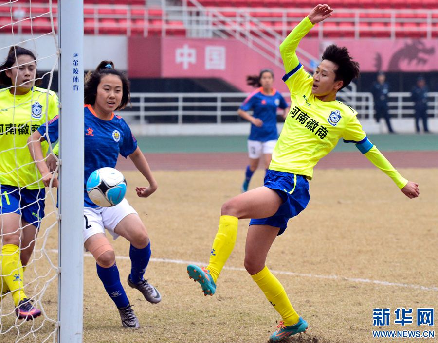 2017年中國女子足球甲級聯(lián)賽重燃戰(zhàn)火。19日,河南徽商女足在主場洛陽體育中心體育場以4∶1擊敗陜西女足,取得開門紅! -