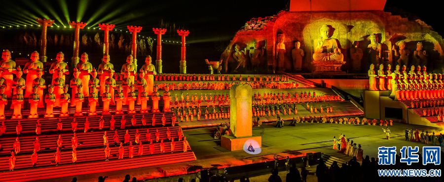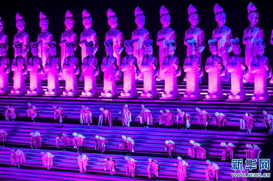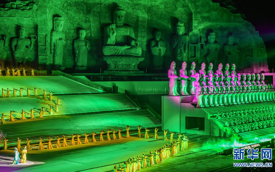 整個(gè)演出劇目演員達(dá)500余人,時(shí)長90分鐘,將常年駐演,使用180°全景式自然山水作舞臺(tái),將現(xiàn)代聲光、電控模型、電技術(shù)、舞美相結(jié)合,為市民及游客帶來了一場展現(xiàn)大唐神都深厚歷史文化底蘊(yùn)和積淀的,震撼全新的藝術(shù)視覺盛宴。新華網(wǎng)發(fā)(黃政偉 攝) -