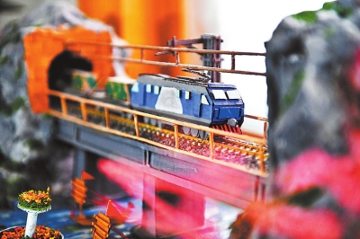 紙短情長,站臺、站房、天橋、鐵軌、蒸汽機車、電力機車、貨運列車、龍門吊……11月24日,走進洛陽車站貨運員孫玉明的家中,一件件逼真的鐵路模型擺在桌子和窗臺上,讓人仿佛進入了“鐵路王國”。為了給新學員做業(yè)務培訓,他用廢紙箱板、泡沫板、掉落的樹枝等材料,按比例做成模型給學員講解。