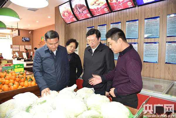 央廣網河南分網2月7日消息(記者 胡曉輝)2018年春節(jié)將至,古都開封到處洋溢著歡樂的節(jié)日氣氛,商場、超市、酒店、集會一片繁忙的景象。為進一步加強食品藥品安全監(jiān)管工作,切實保障人民群眾“舌尖上的安全”,2月6日,省食藥監(jiān)局副巡視員王建防、食品生產處處長吳祖興等一行4人對開封市保障春節(jié)期間食品安全工作進行督導檢查。市政府副市長、市食安委副主任鄭中華,市政府食安辦主任、市食藥監(jiān)局局長管堅勇、祥符區(qū)副區(qū)長刁百闖等陪同檢查。